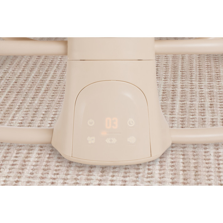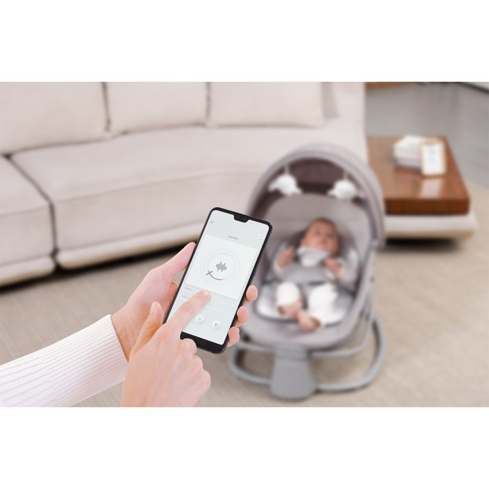 Ngoài ra, nôi còn có thể phát nhạc qua kết nối bluetooth với điện thoại hoặc thiết bị âm thanh khác. Đặc biệt, nôi sử dụng nguồn điện trực tiếp thông qua cổng sạc USB tiện lợi, thay vì pin như các dòng sản phẩm truyền thống.